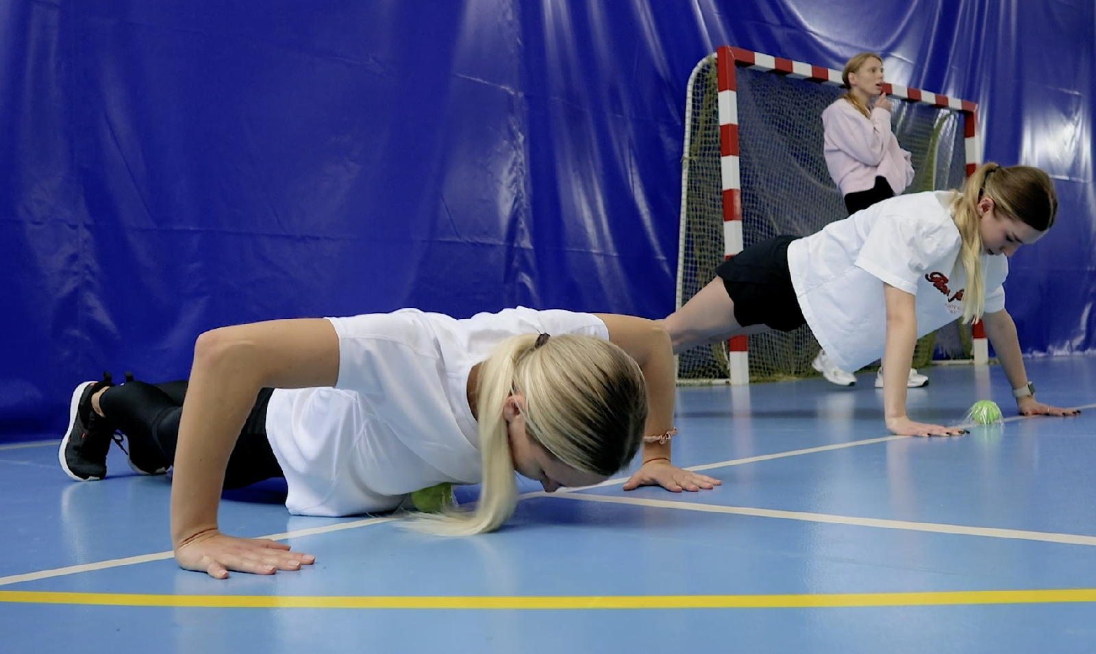 поднимание туловища из положения «лёжа на спине» (за 1 минуту), сгибание и разгибание рук в упоре лежа.